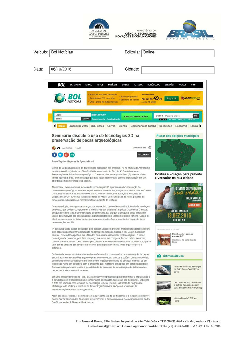 Bol Notícias | Seminário discute o uso de tecnologias 3D na preservação de peças arqueológicas