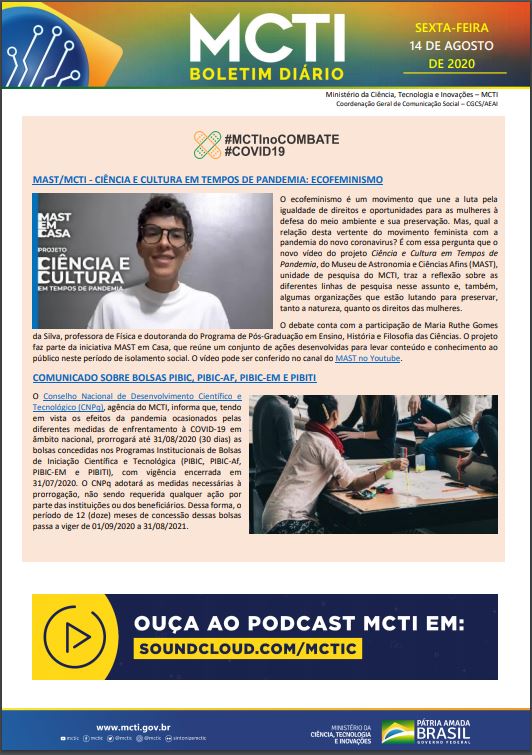 Boletim Diário MCTI | MAST/MCTI dá prosseguimento ao projeto 'Ciência e Cultura em Tempos de Pandemia': Ecofeminismo