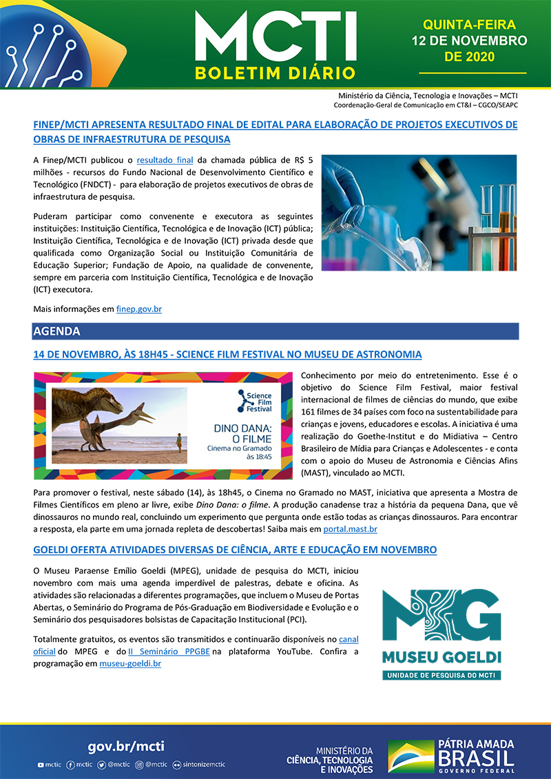 Boletim Diário MCTI | Sábado no MAST com Science Film Festival no gramado