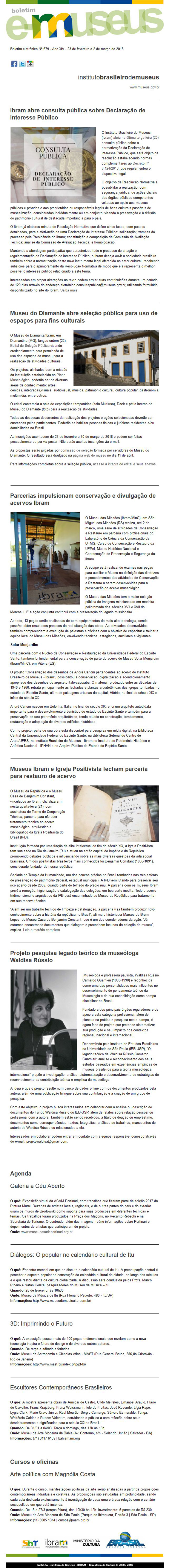 Boletim e-museus | Boletim eletrônico Nº 679 - Ano XIV - 23 de fevereiro a 2 de março de 2018