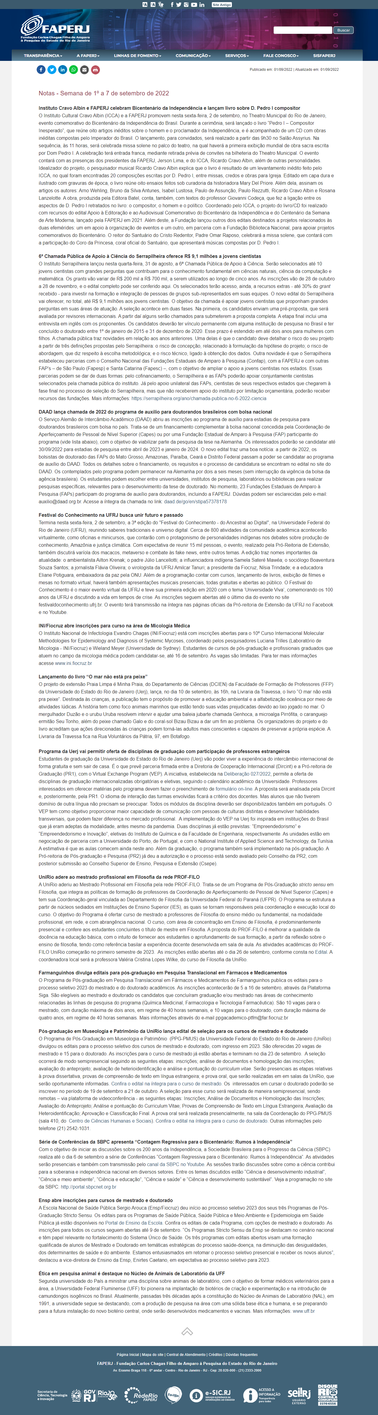 Boletim FAPERJ - MAST na reportagem "Pós-graduação em Museologia e Patrimônio da UniRio/MAST lança edital de seleção para os cursos de mestrado e doutorado"