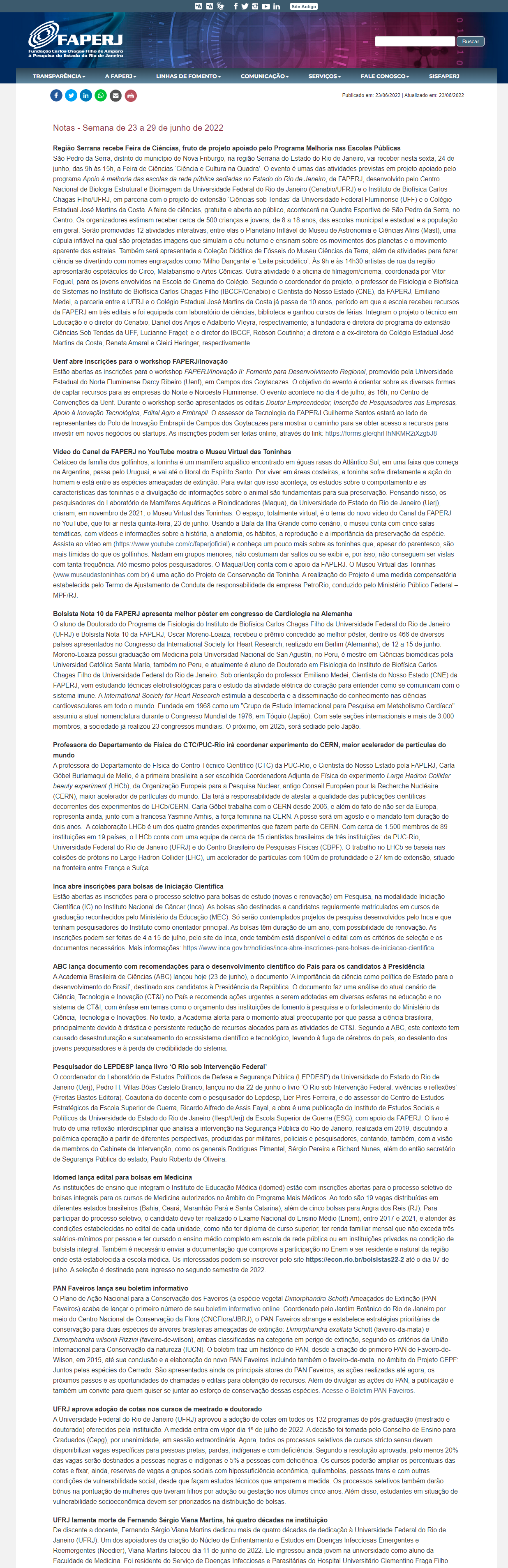 Boletim FAPERJ - MAST na reportagem "Região Serrana recebe Feira de Ciências"
