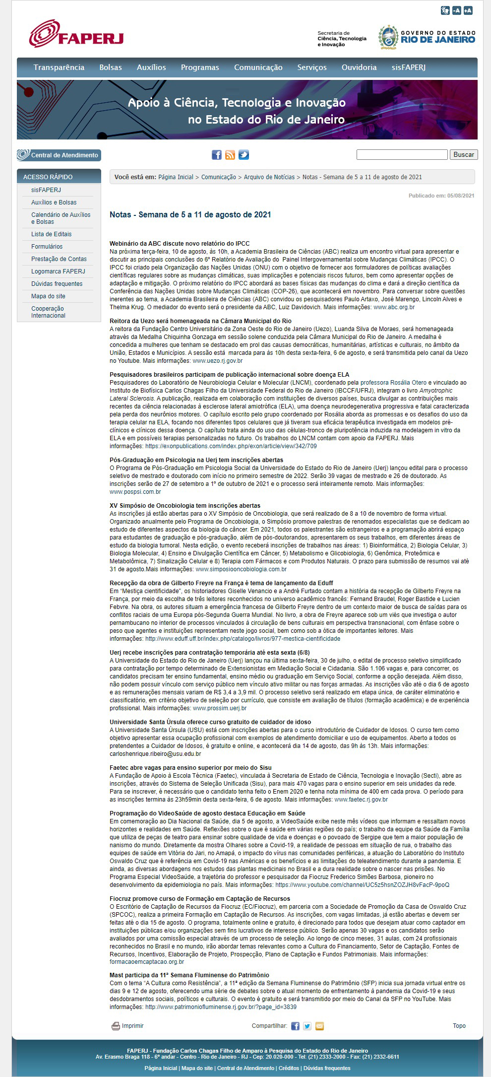 Boletim Faperj - MAST participa da 11ª Semana Fluminense do Patrimônio