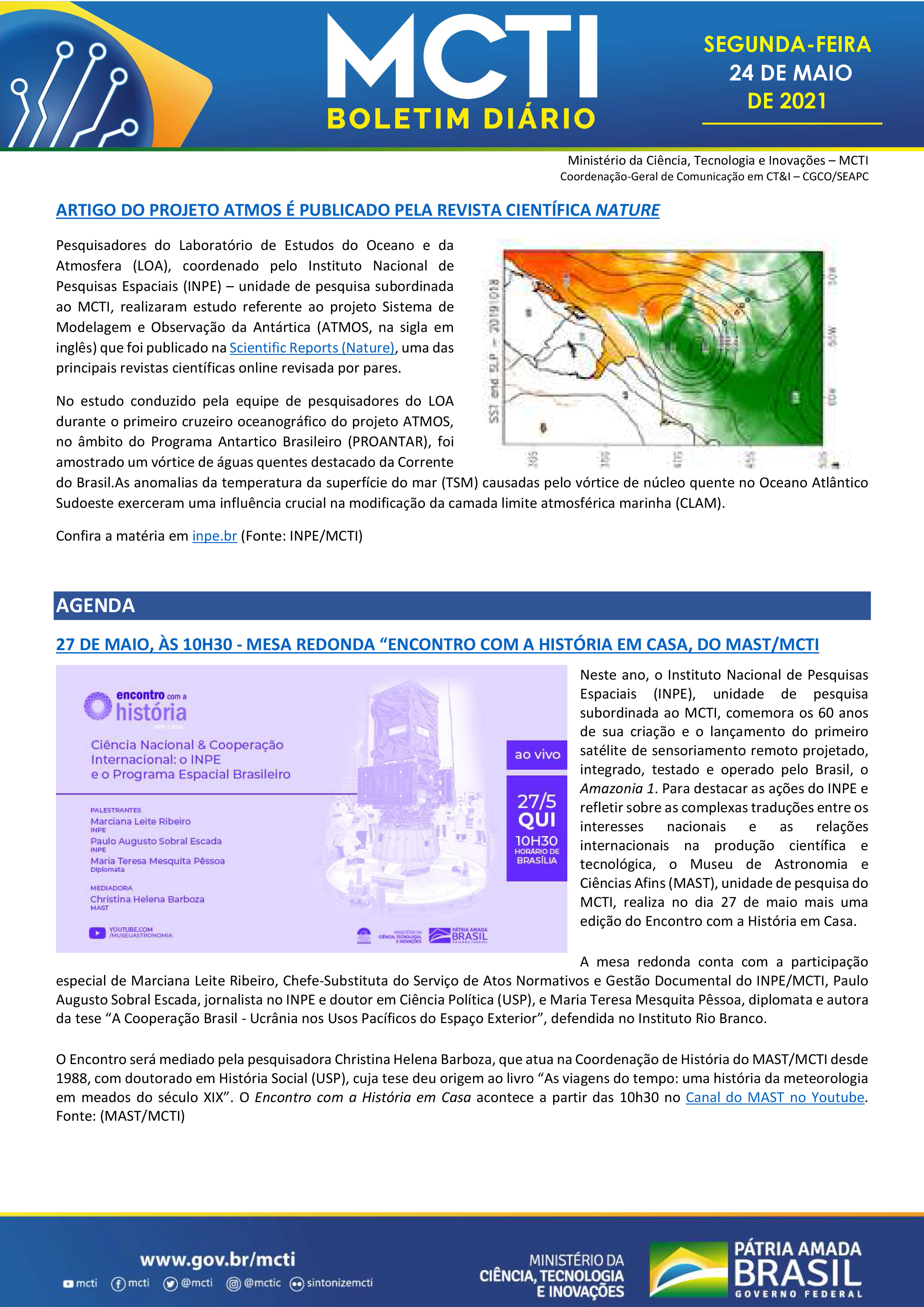 Boletins Diários MCTI - MAST celebra os 60 anos do Instituto Nacional de Pesquisas Espaciais (INPE) no Encontro com a História em Casa
