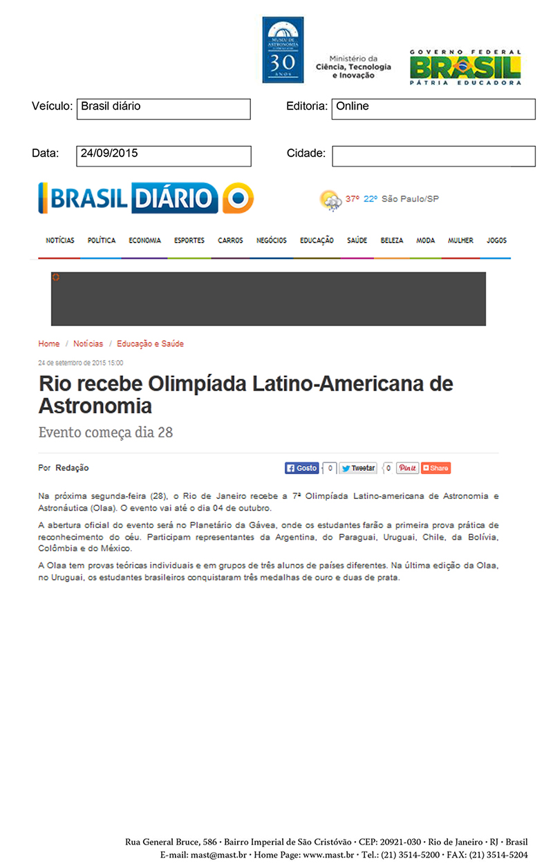 Brasil Diário | Rio recebe Olimpíada Latino-Americana de Astronomia