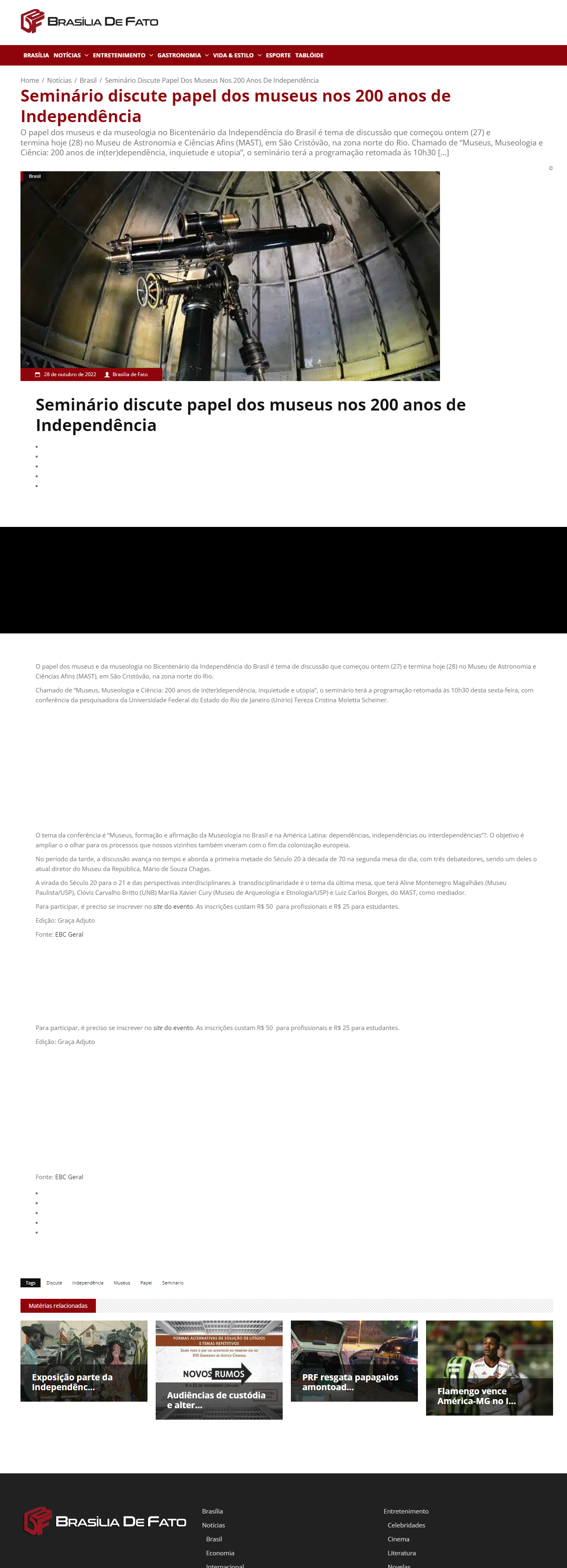 Brasília de Fato - Seminário discute papel dos museus nos 200 anos de Independência