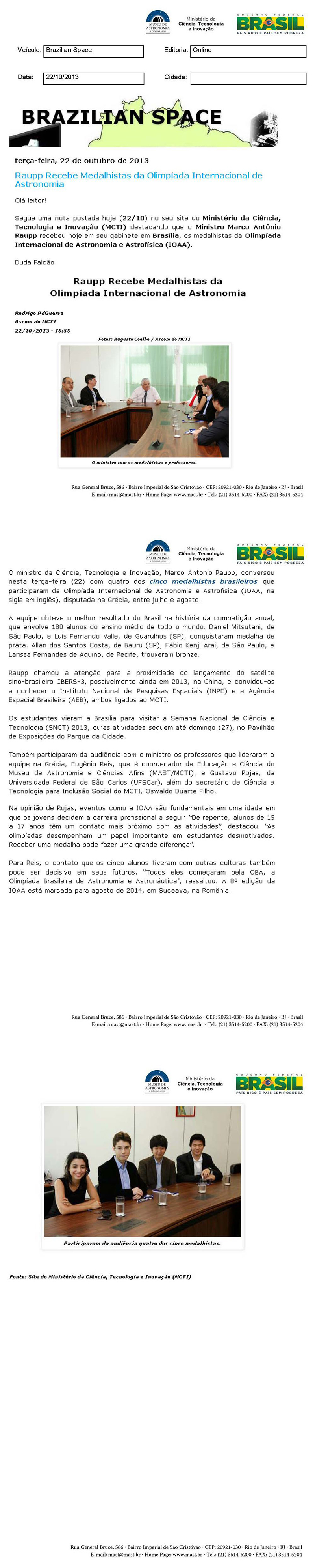 Brazilian Space | Raupp recebe medalhistas de Olimpíada Internacional de Astronomia