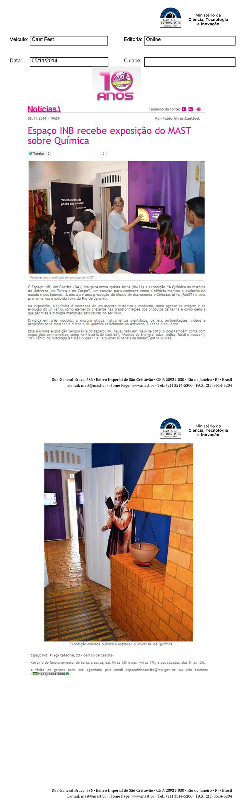 Caet Fest | Espaço INB recebe exposição do MAST sobre Química