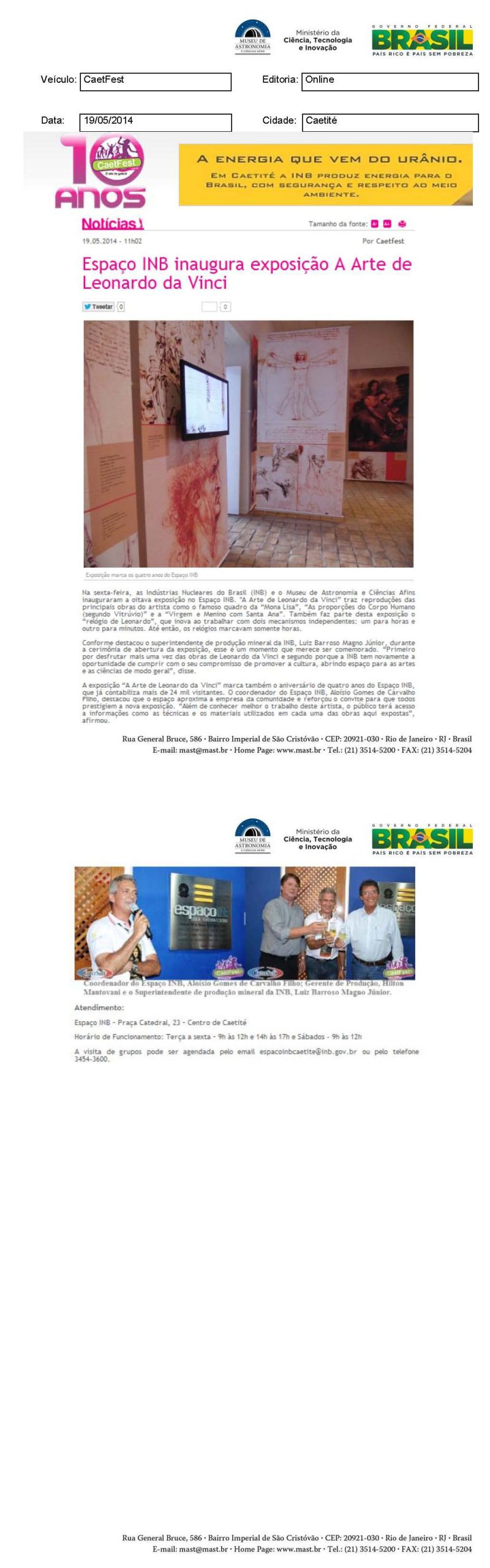 CaetFest | Espaço INB inaugura exposição A Arte de Leonardo da Vinci