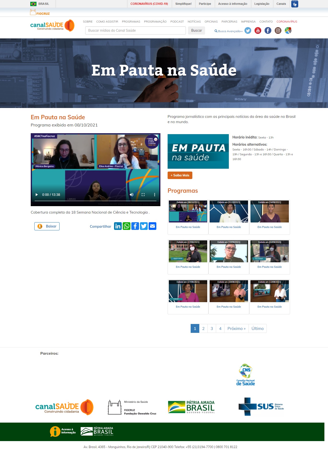 Canal Saúde Fiocruz / Programa 'Em Pauta na Saúde'- Atividades do MAST na 18ª SNCT 2021
