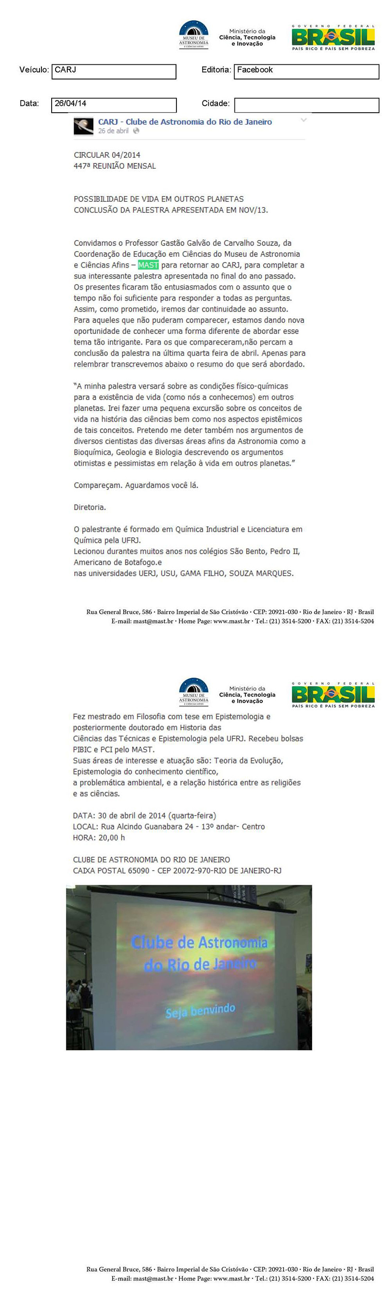 CARJ | Possibilidade de vida em outros planetas - conclusão da palestra apresentada em NOV/13