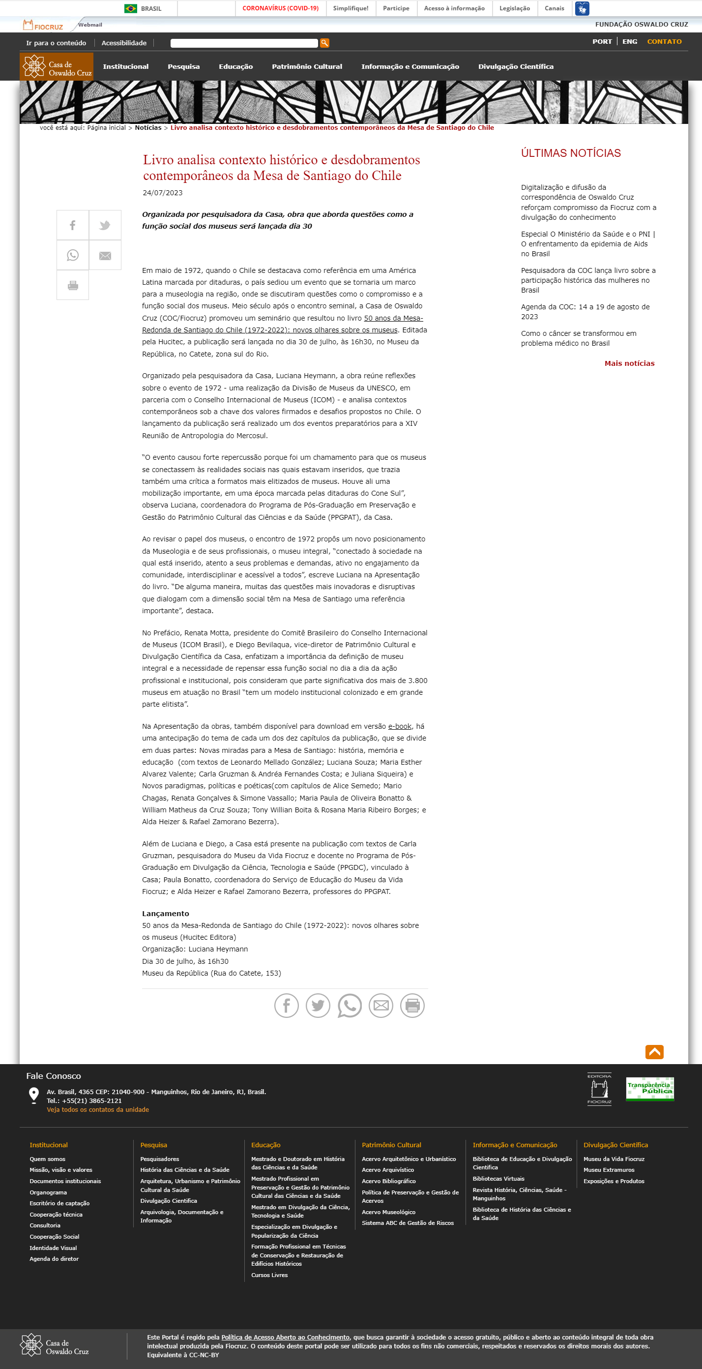 Casa de Oswaldo Cruz - Livro analisa contexto histórico e desdobramentos contemporâneos da Mesa de Santiago do Chile
