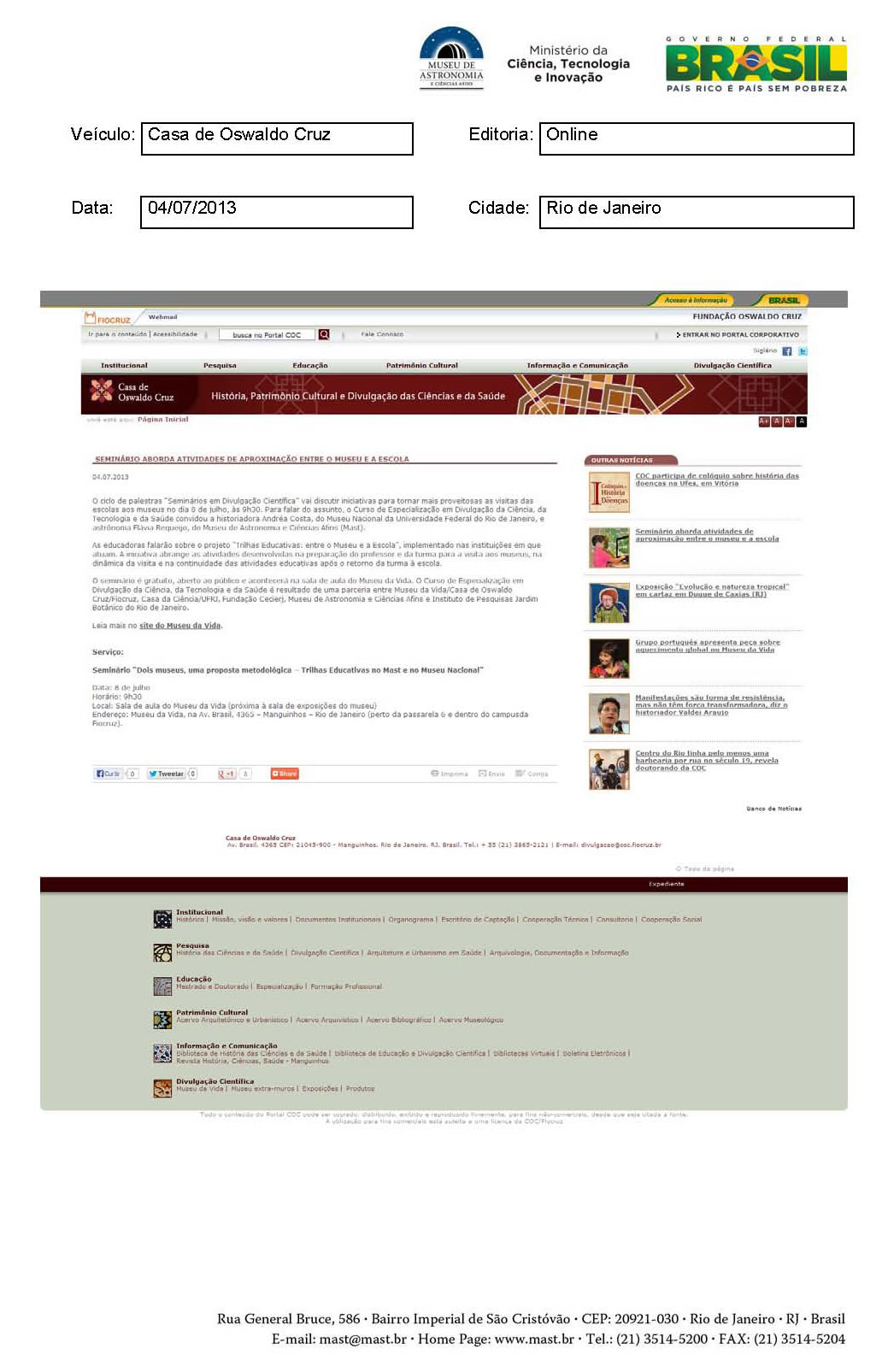 Museu de Astronomia e Ciências Afins - MAST