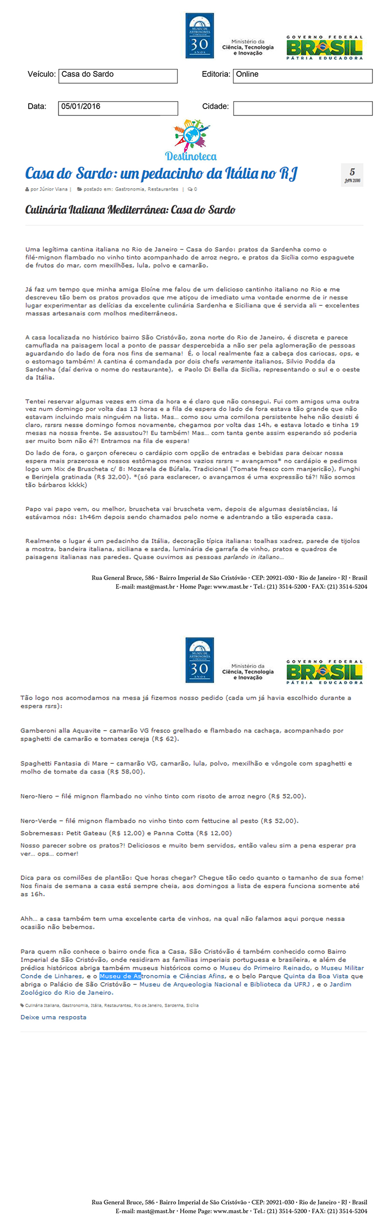 Base Jurídica - Ato de constituição do MAST