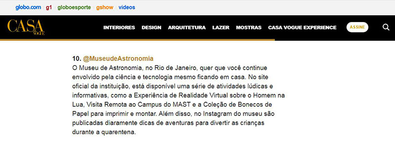 Casa Vogue online | MAST disponibiliza visita virtual