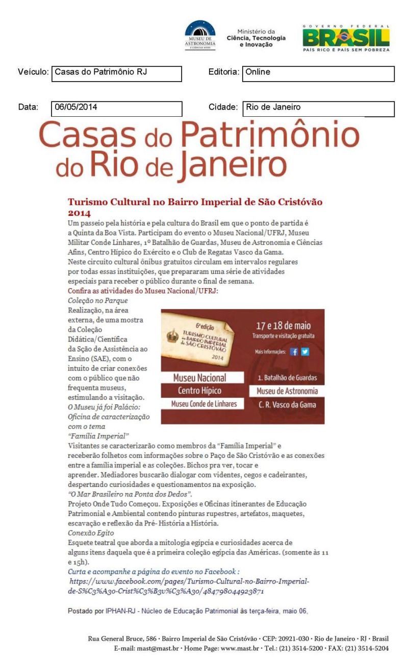 Casas do Patrimônio RJ | Turismo Cultural no Bairro Imperial de São Cristóvão 2014