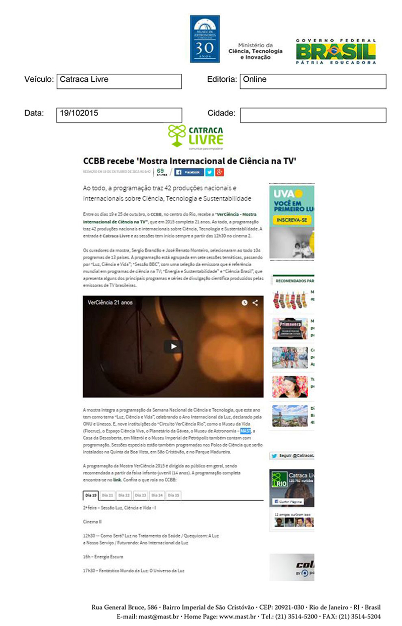 Catraca Livre | CCBB recebe 'Mostra Internacional de Ciência na TV'