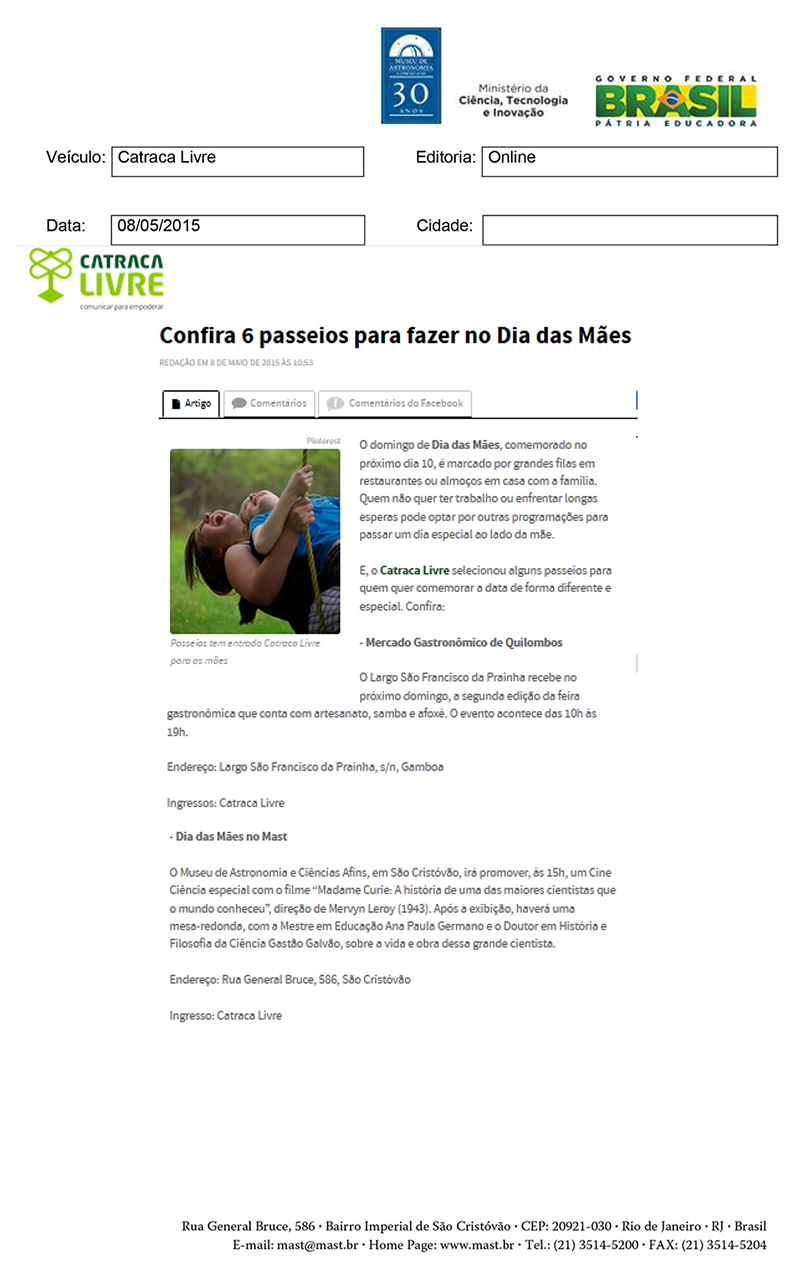 Catraca Livre | Confira 6 passeios para fazer no Dia das Mães
