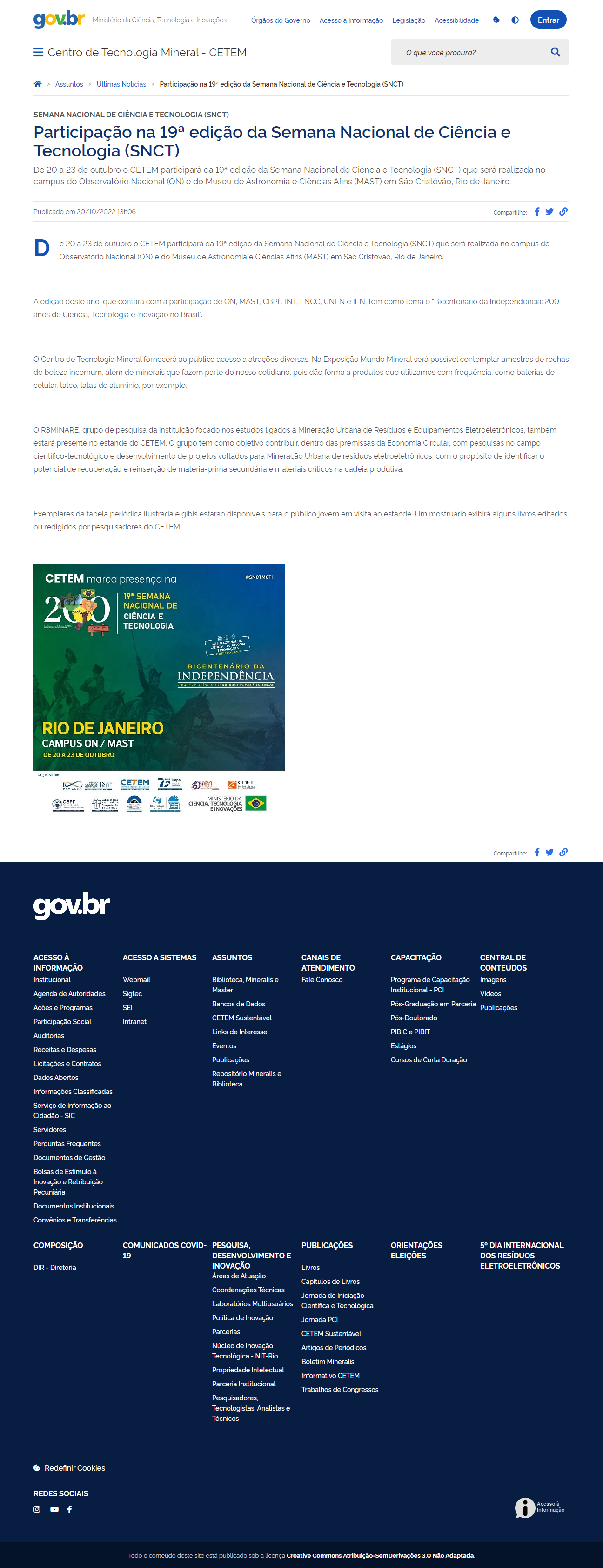 Centro de Tecnologia Mineral (CETEM) - Participação na 19ª edição da Semana Nacional de Ciência e Tecnologia (SNCT)