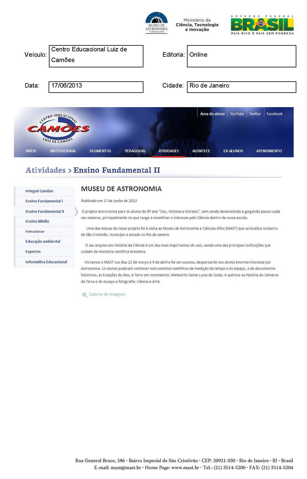 Centro Educacional Luiz de Camões | Museu de Astronomia