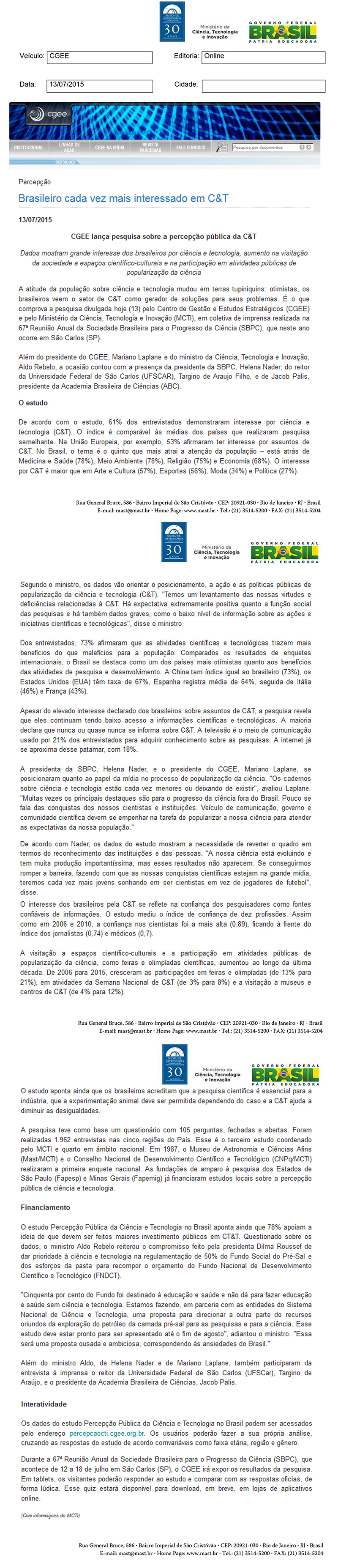 CGEE | Brasileiro cada vez mais interessado em C&T