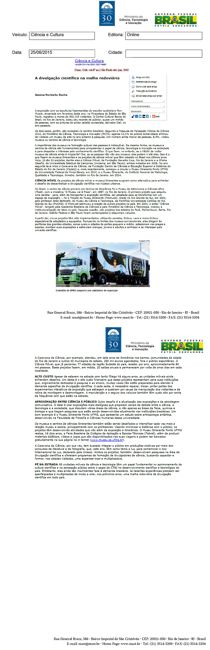 Ciência e Cultura | A divulgação científica na malha rodoviária