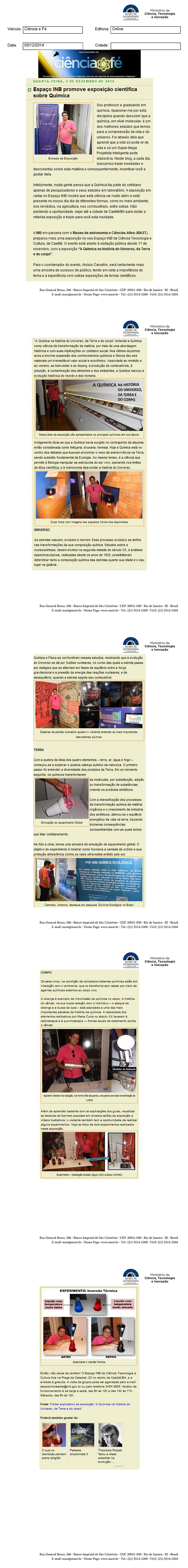 Ciência e Fé | Espaço INB promove exposição científica sobre Química
