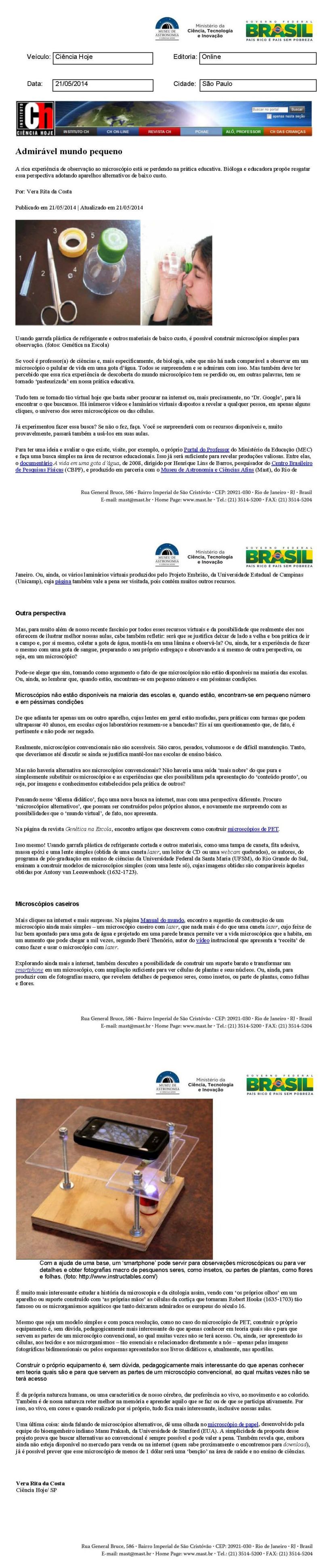 Ciência Hoje | Admirável mundo pequeno