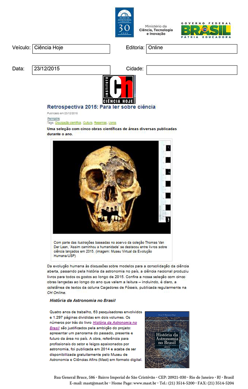 Ciência Hoje | Uma seleção com cinco obras científicas de áreas diversas publicadas durante o ano
