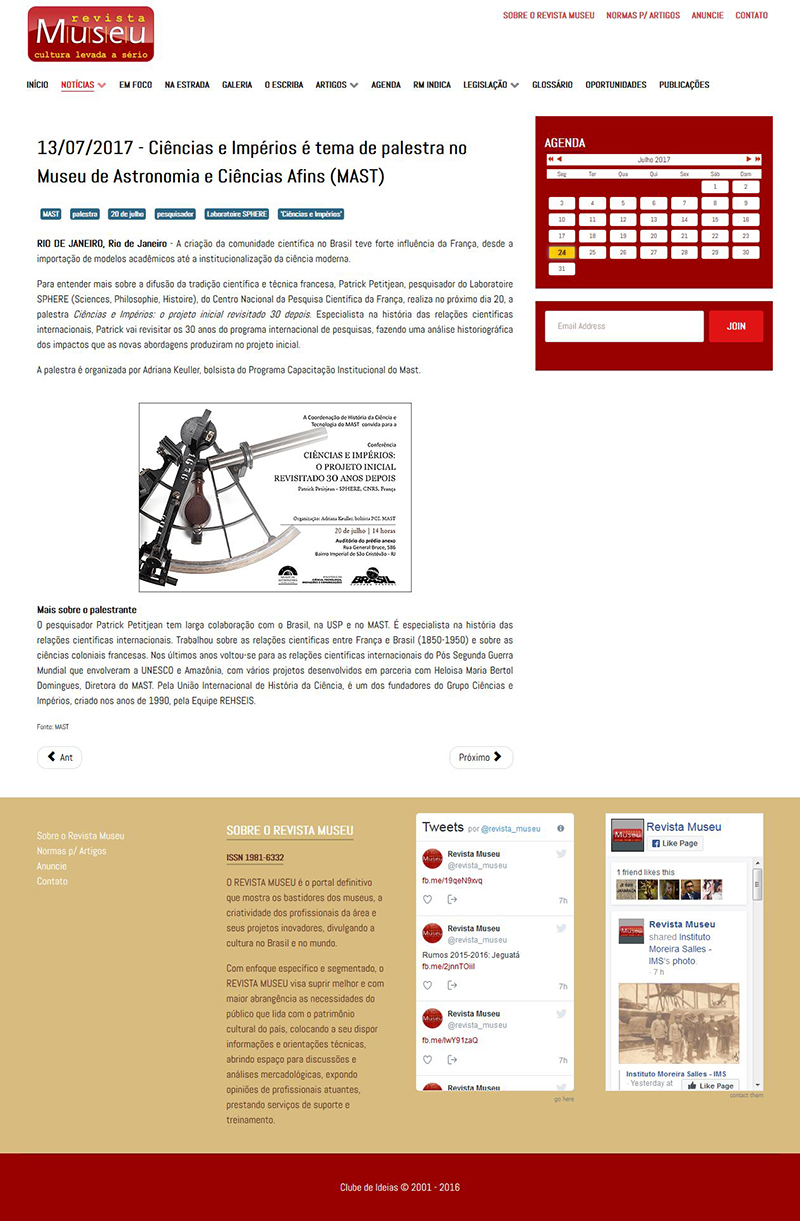 Revista Museu | Ciências e Impérios é tema de palestra no Museu de Astronomia e Ciências Afins (MAST)