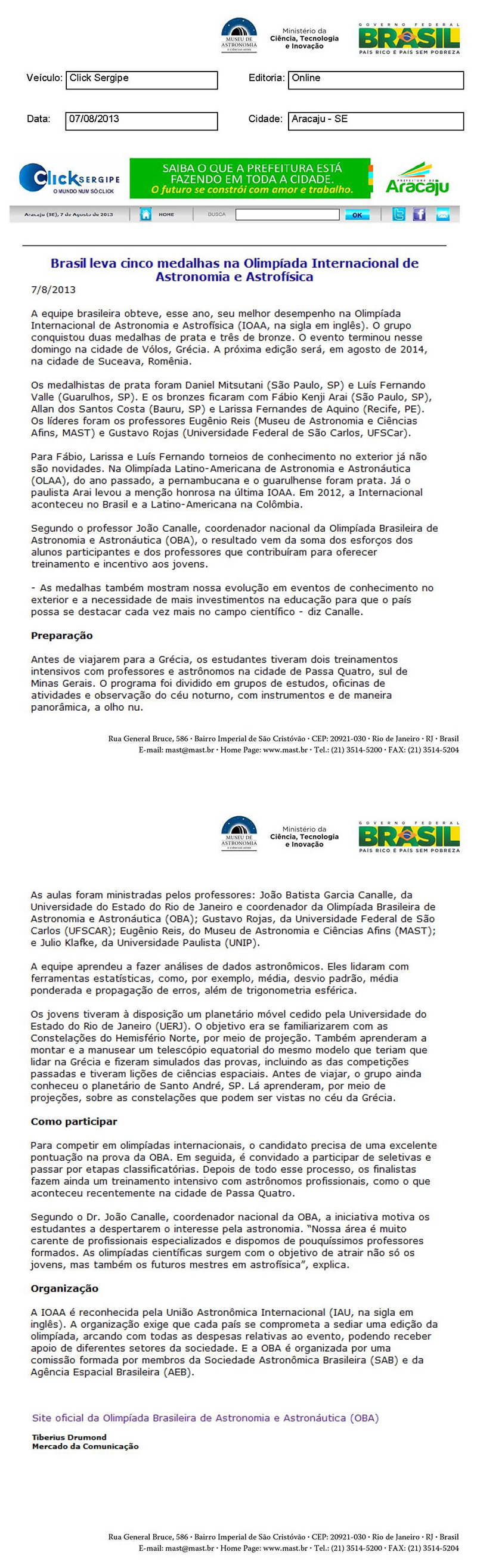 Click Sergipe | Brasil leva cinco medalhas na Olimpíada Internacional de Astronomia e Astrofísica