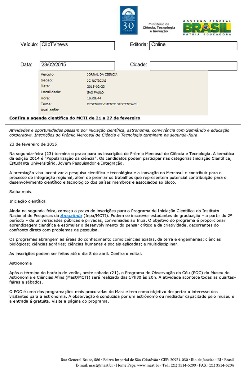 Clip TV News | Confira a agenda científica de 21 a 27 de fevereiro