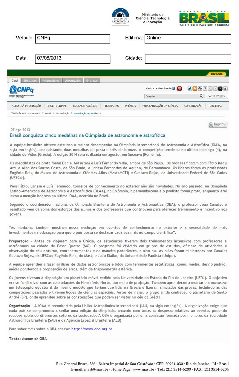 CNPq | Brasil conquista cinco medalhas na Olimpíada Internacional de Astronomia e Astrofísica