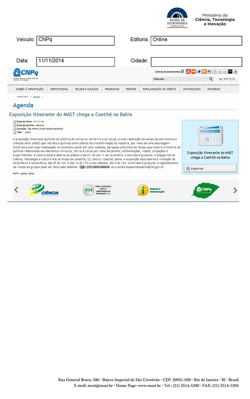 CNPq | Exposição itinerante do MAST chega a Caetité na Bahia