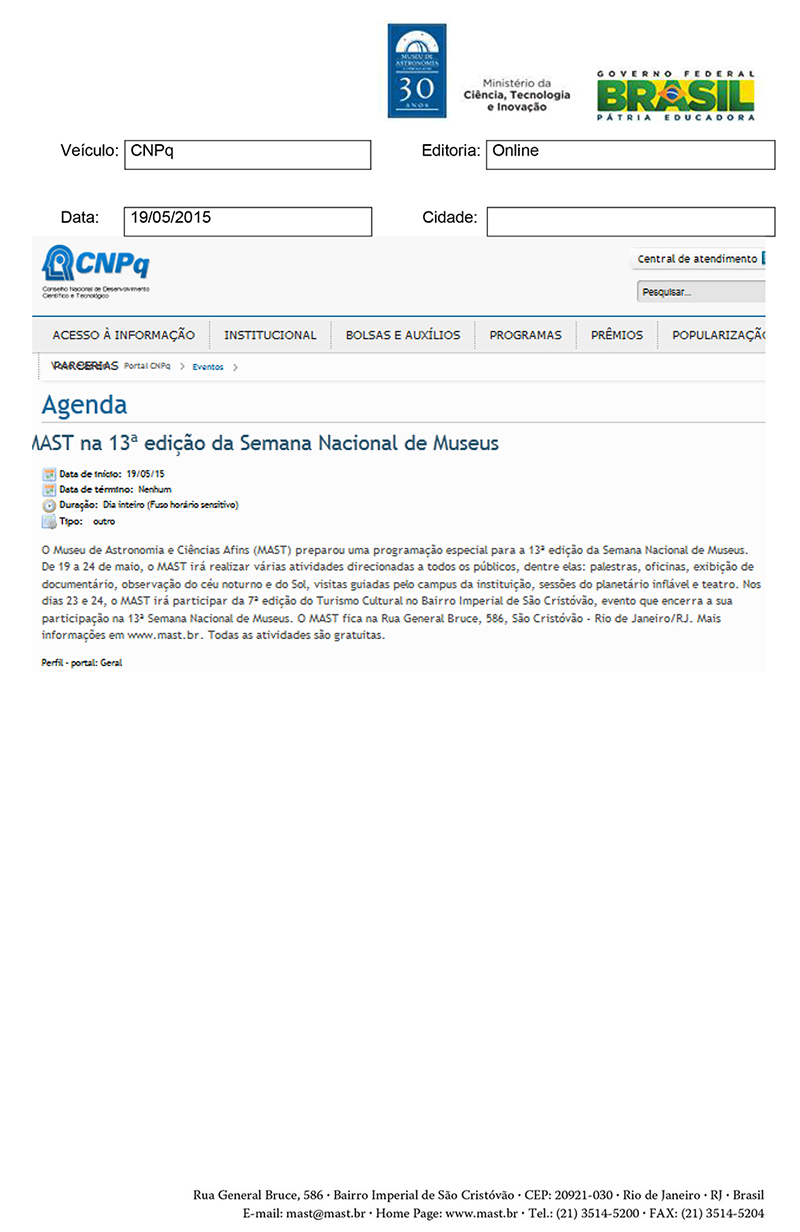 CNPq | MAST na 13ª edição da Semana Nacional de Museus