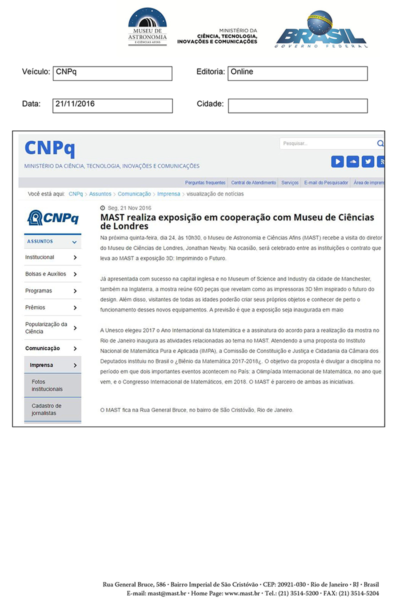 CNPq | MAST realiza exposição em cooperação com Museus de Ciências de Londres