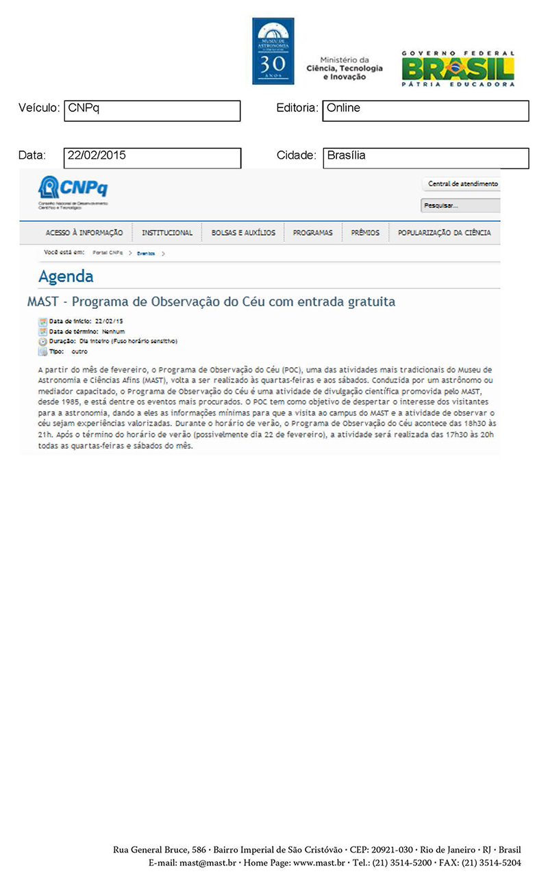 CNPq | Programa de Observação do Céu com entrada gratuita