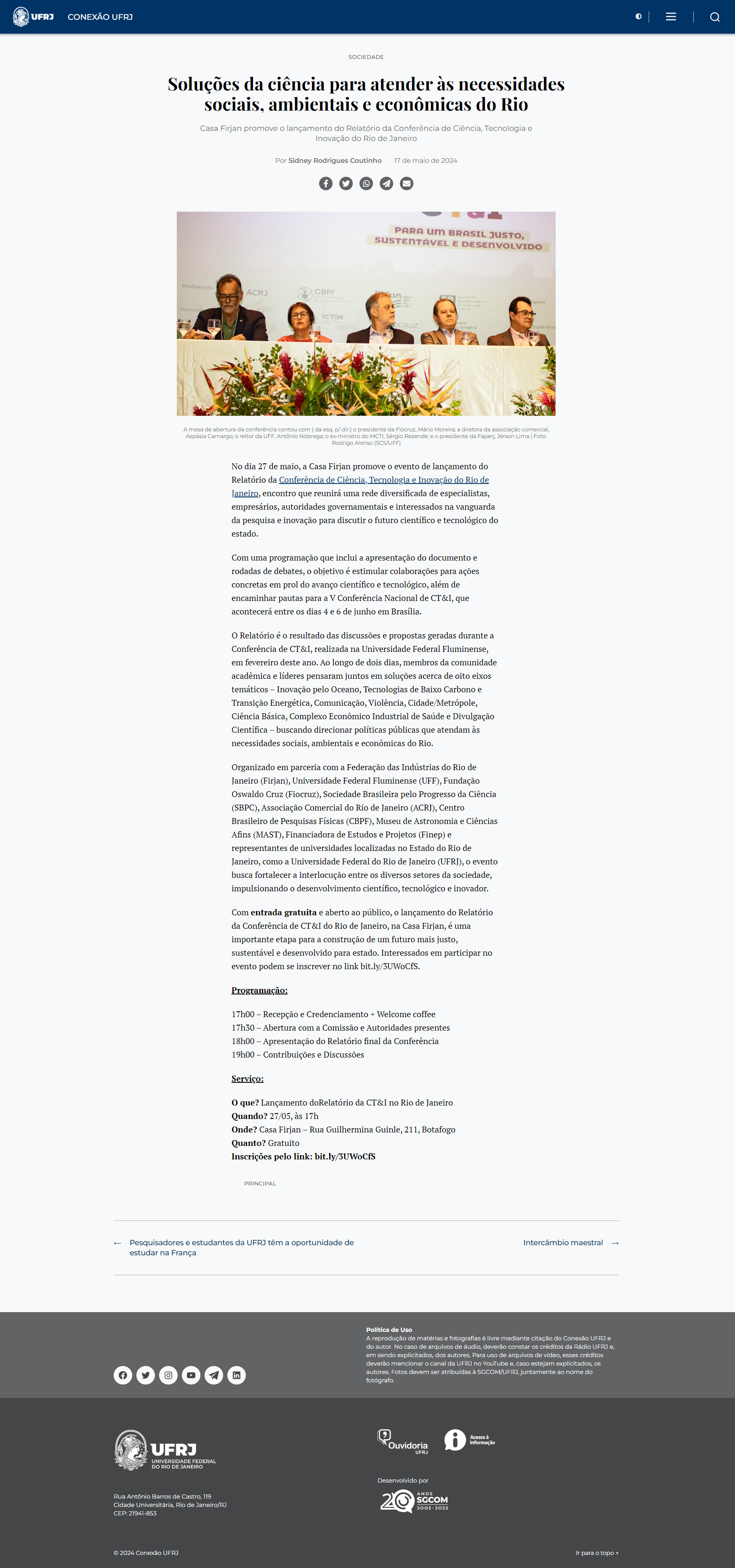 Conexão UFRJ - Soluções da ciência para atender às necessidades sociais, ambientais e econômicas do Rio