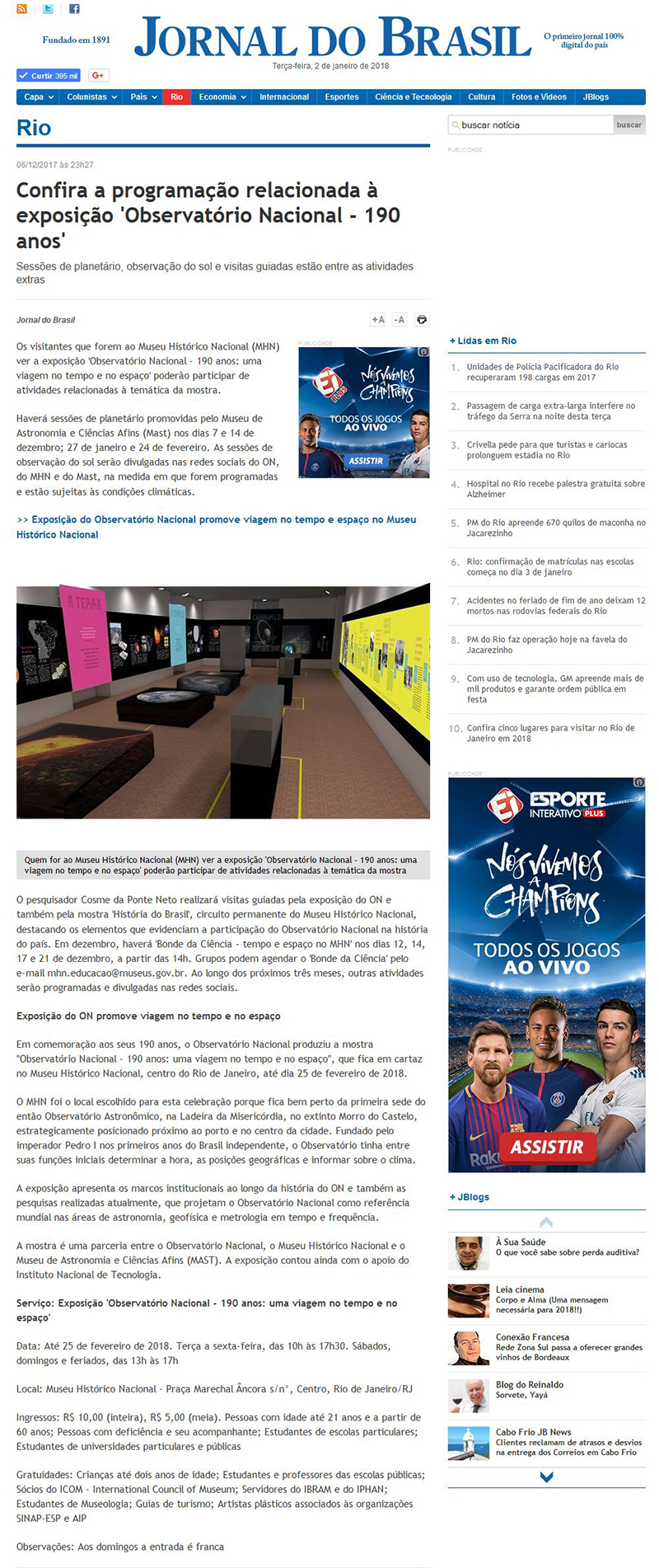 Jornal do Brasil | Confira a programação relacionada à exposição 'Observatório Nacional - 190 anos'