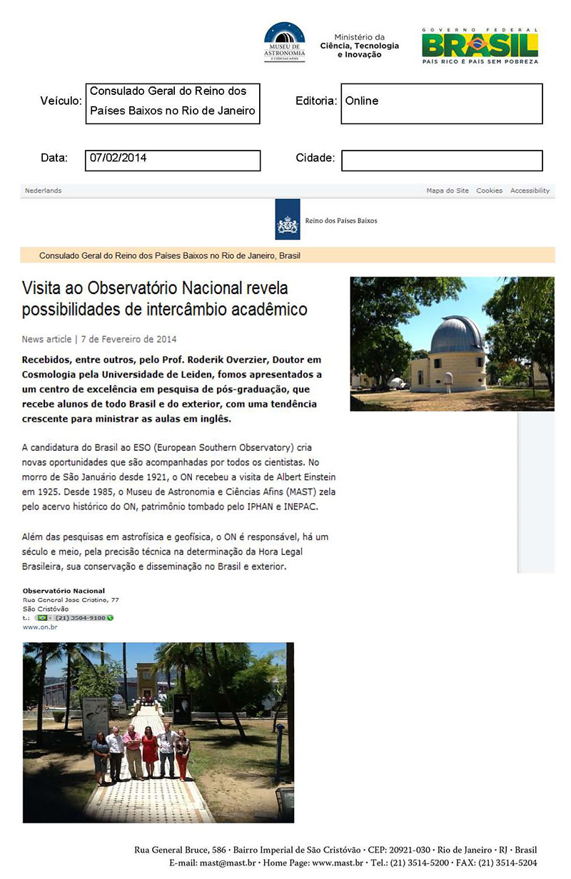 Consulado Geral do Reino dos Paíseis Baixos no Rio de janeiro | Visita ao Observatório nacional revela possibilidades de intercâmbio acadêmico