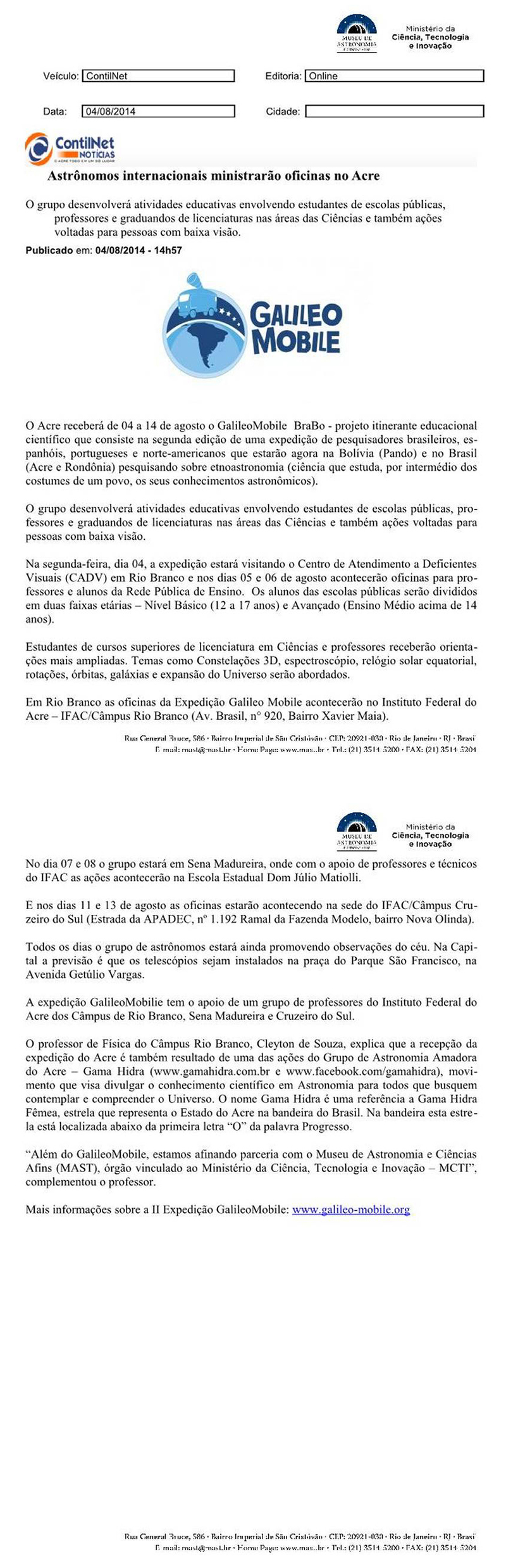 ContiNet Notícias | Astrônomos internacionais ministrarão oficinas no Acre