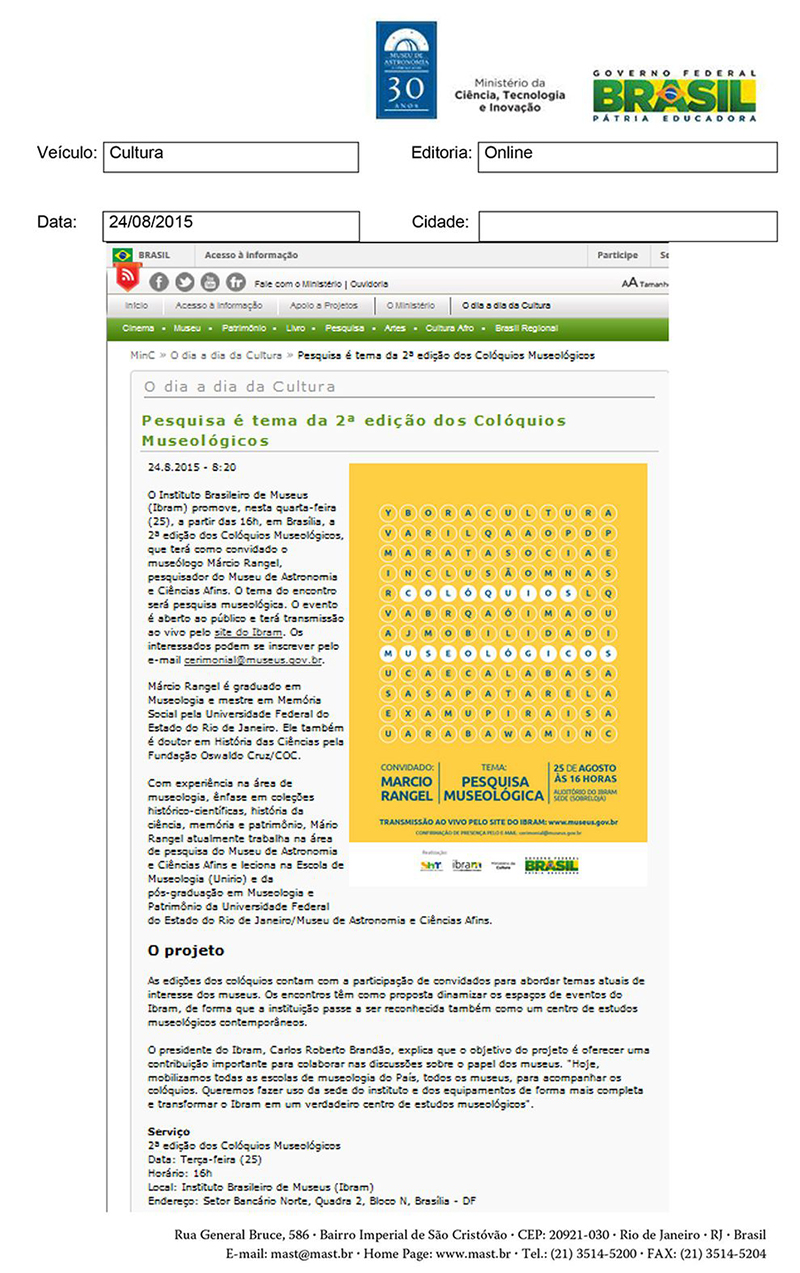 Cultura | Pesquisa é tema da 2ª edição dos Collóquis Museológicos