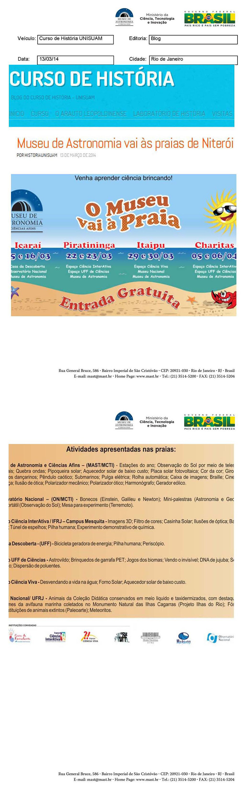 Curso de História UNISUAM | Museu de Astronomia vai às praias de Niterói
