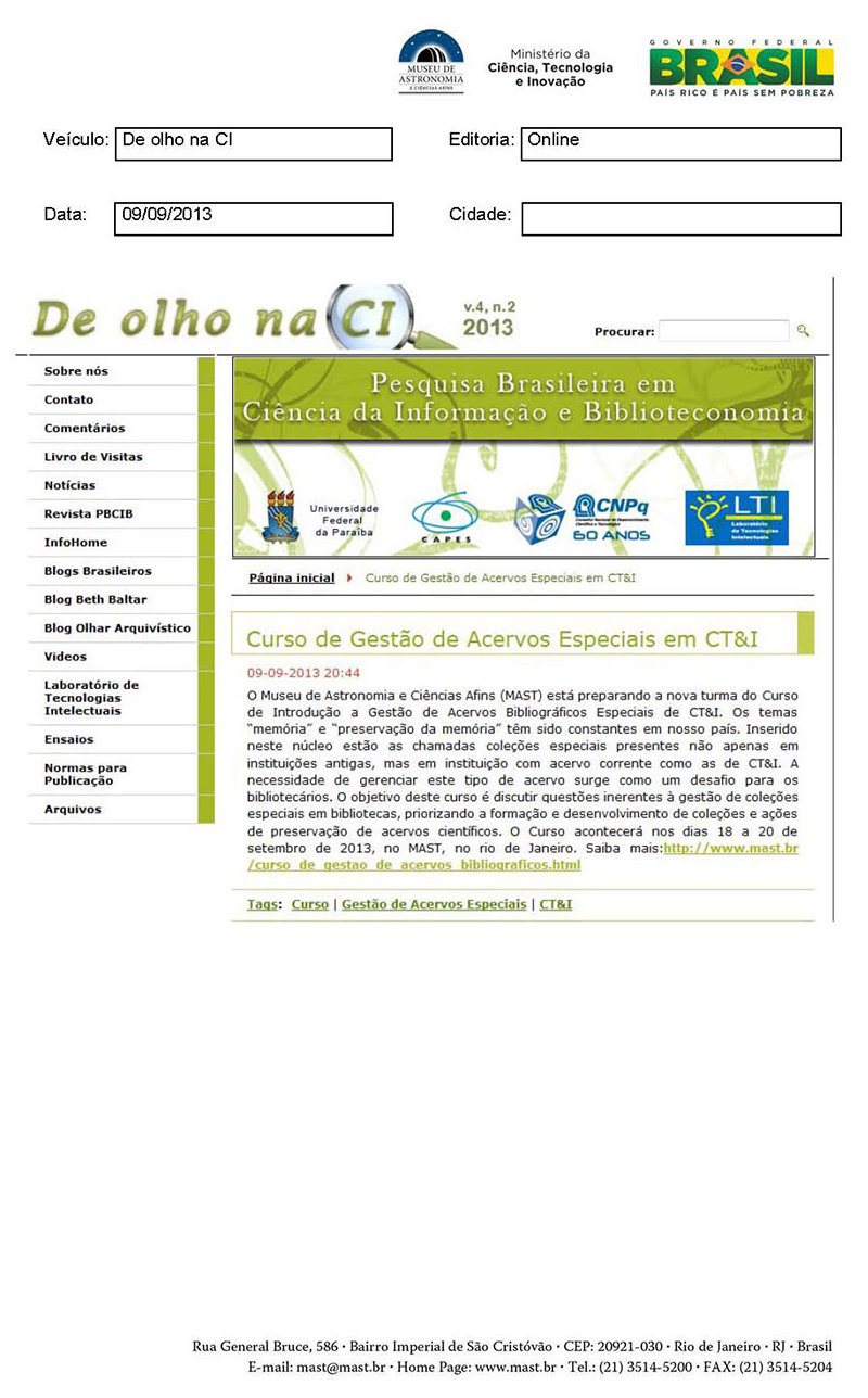 De Olho na CI | Curso de Gestão de Acervos Especiais em CT&I