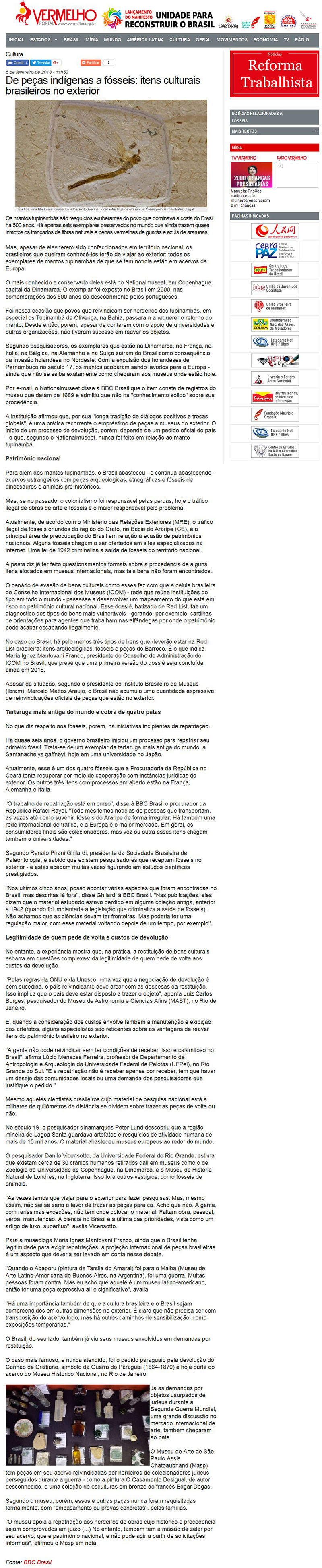 Portal Vermelho | De peças indígenas a fósseis: itens culturais brasileiros no exterior
