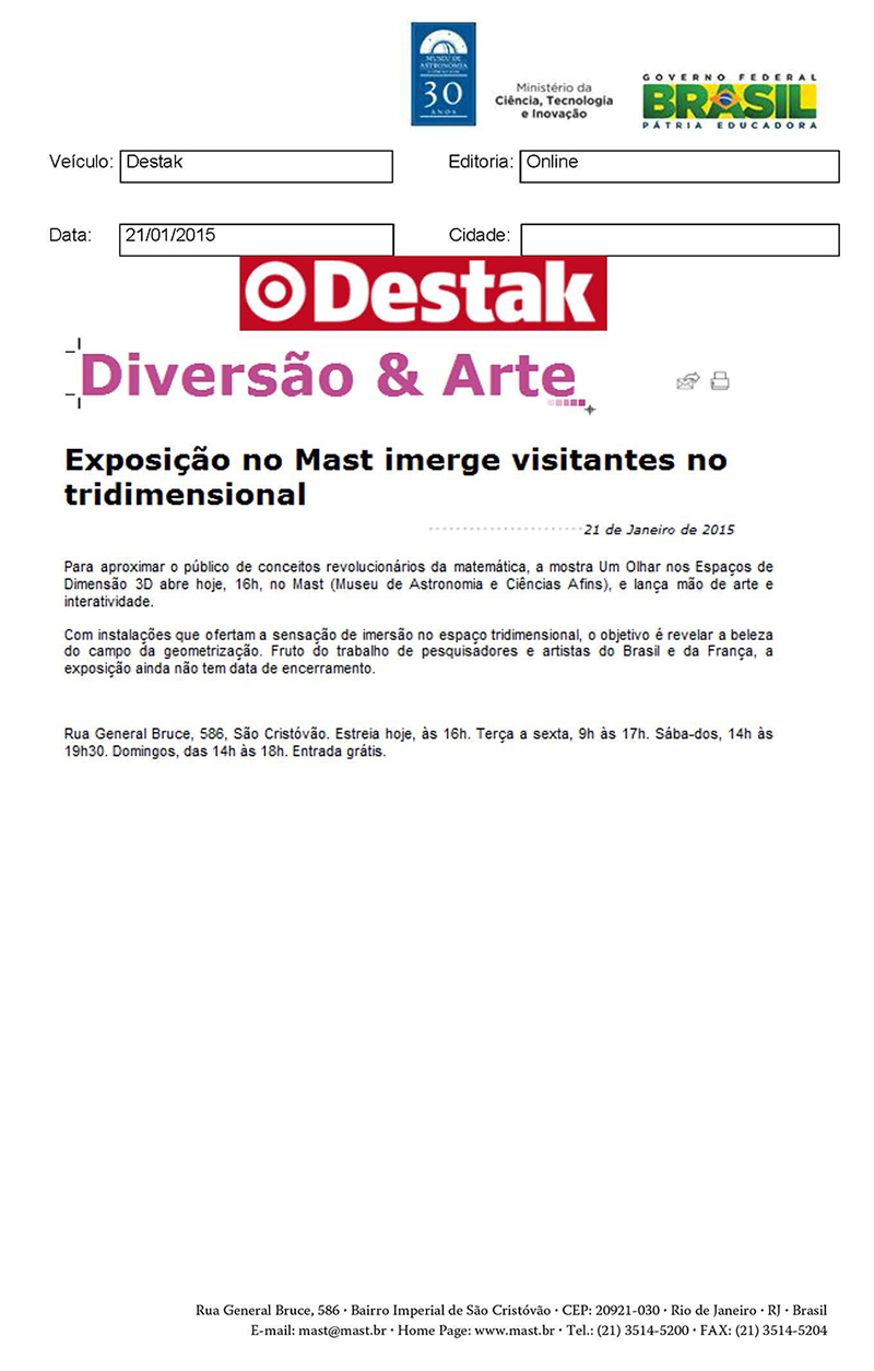 Destak | Exposição no MAST imerge visitantes no tridimensional