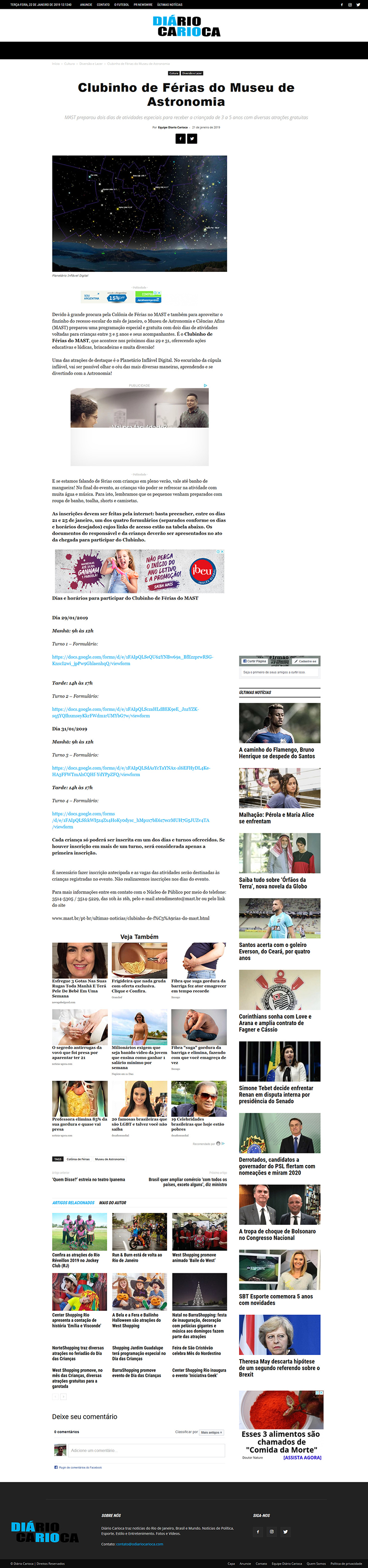 Diário Carioca | Clubinho de Férias do Museu de Astronomia