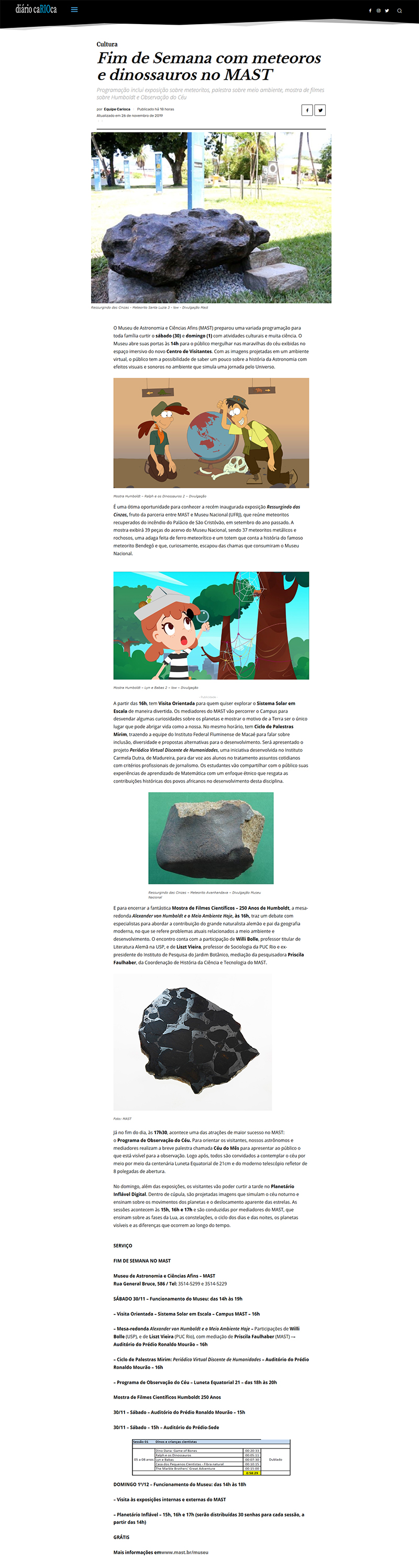 Diário Carioca | Fim de semana com meteoros e dinossauros no MAST