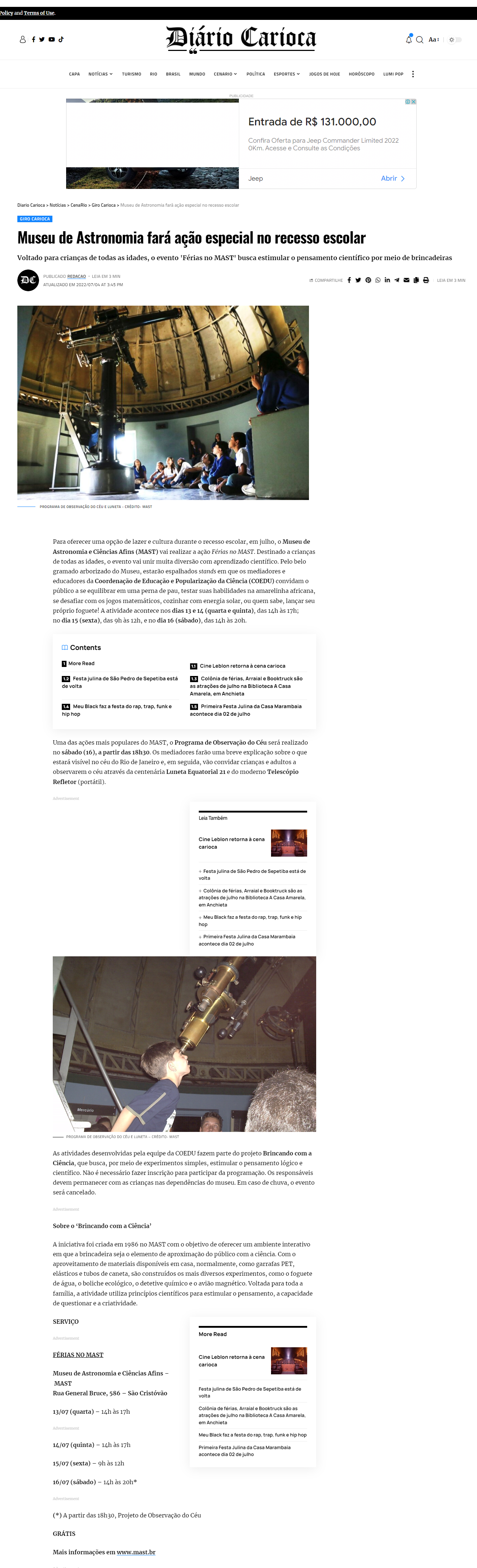Diário Carioca - Museu de Astronomia realiza o evento 'Férias no MAST'