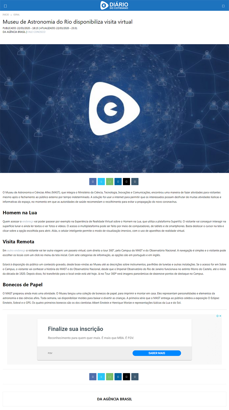 Diário Cotidiano online (Joinvile – SC) | MAST disponibiliza visita virtual